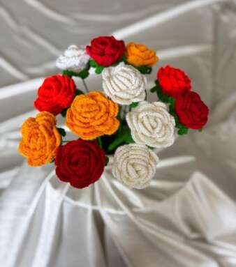 Hand-Crocheted Rose Flower with Stem – Red