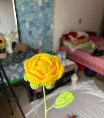 Hand-Crocheted Rose Flower with Stem – Yellow