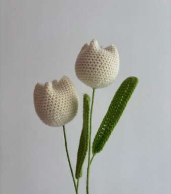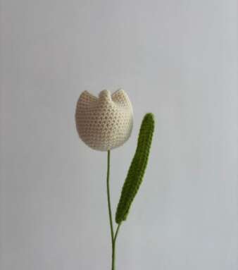 Crochet Tulip With Stem – White
