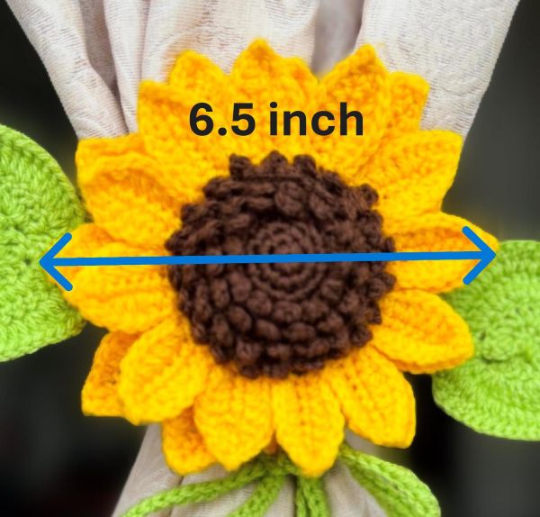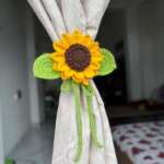 “Handmade crochet sunflower curtain holder – a bright, cheerful way to keep curtains stylishly tied back and add charm to any room.” 🌻
