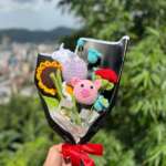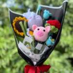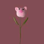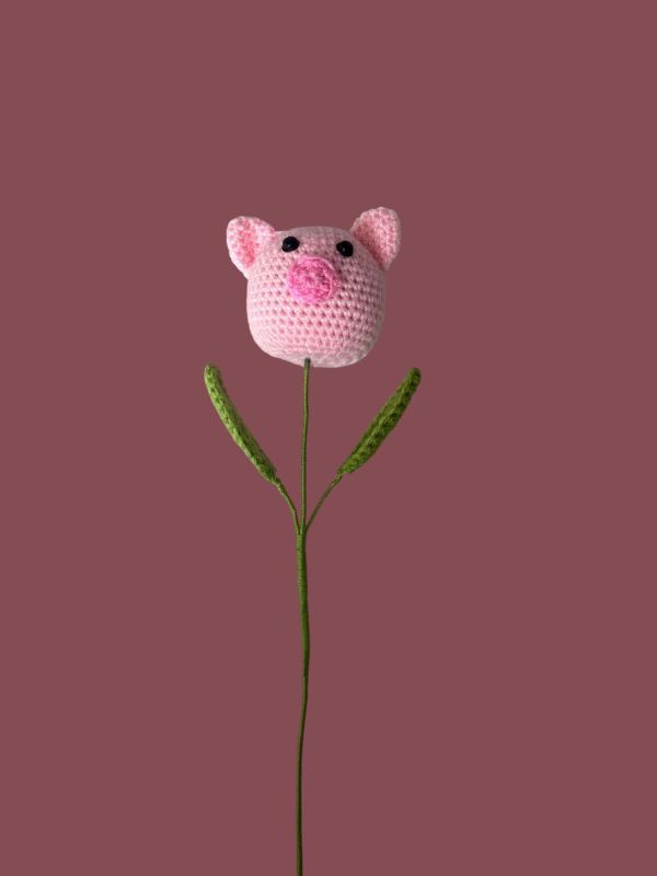 Handmade Crochet Piggy Bloom Flower – Adorable Pink Pig Flower Stem