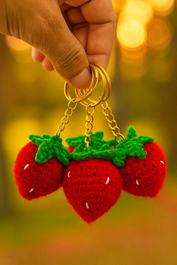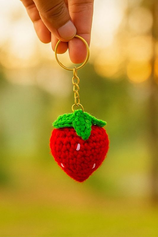 Tired of losing your keys in a sea of black and silver? Meet your new favorite accessory – the charming, hand-crocheted strawberry keychain! This isn’t just any keychain; it’s a tiny, wearable piece of joy made with care and attention to detail.