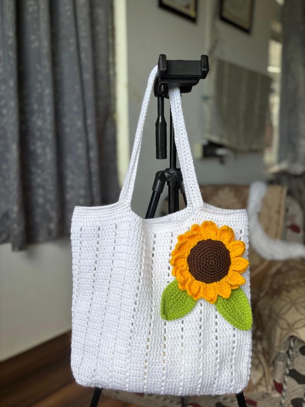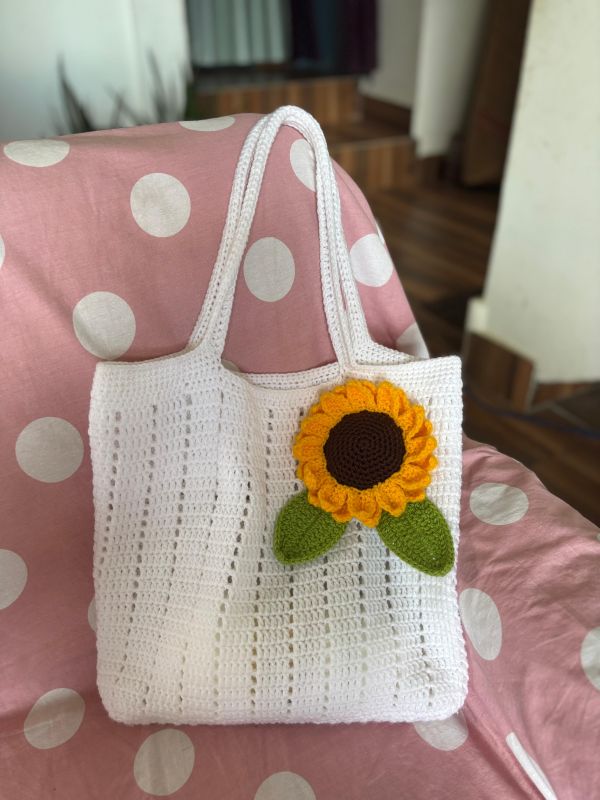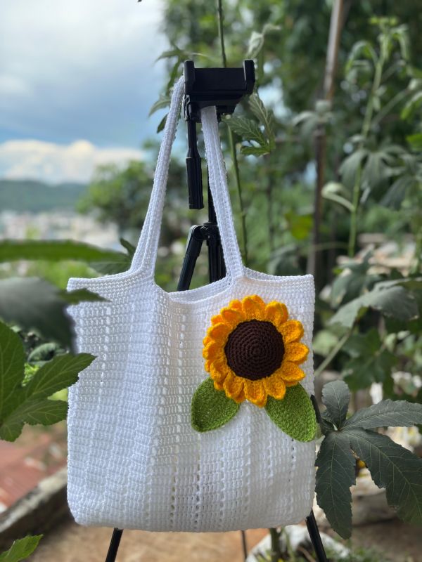 Brighten your day with this delightful handmade crochet tote bag featuring a cheerful sunflower bloom! Perfectly blending cottage core aesthetics with everyday functionality, this bag is a must-have accessory for spring and summer outings.