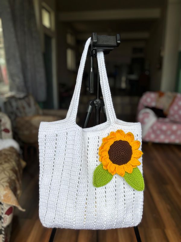 Handmade Sunflower Crochet Tote Bag -Beach Bag, Market Tote, Everyday Unisex Bag