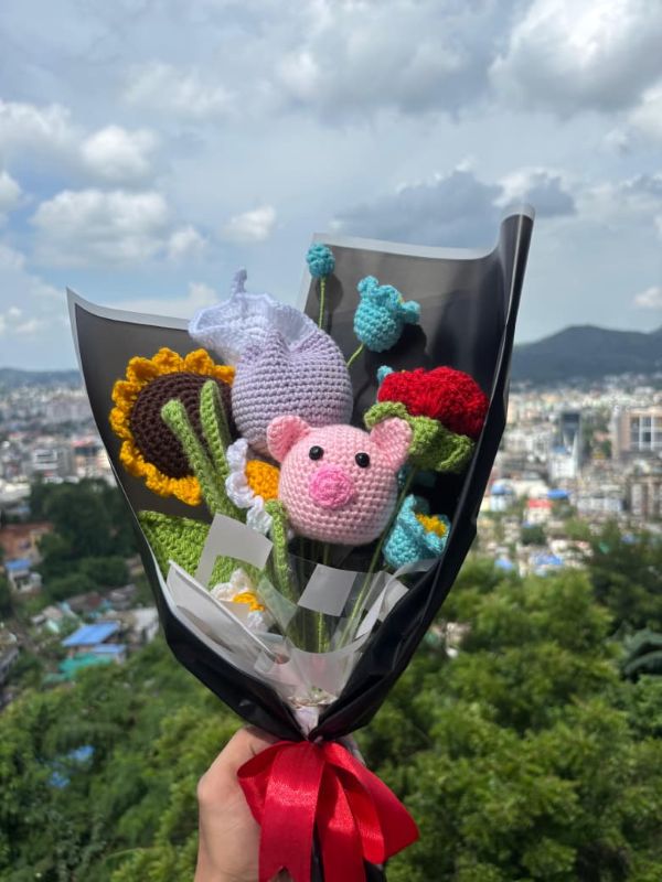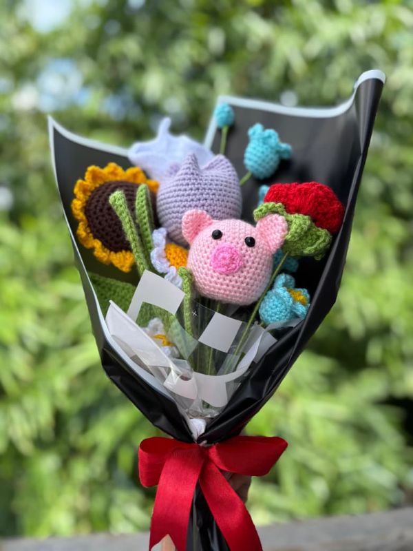 · Materials: Premium yarn, paper-wrapped bouquet stems.