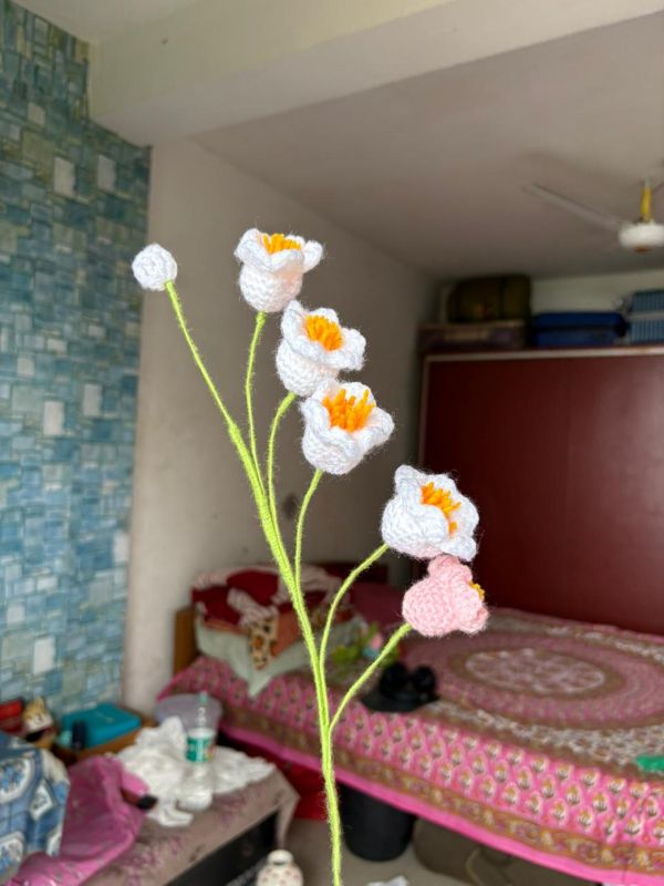 Delicate and everlasting, this charming crochet lily of the valley features tiny snow-white bell-shaped flowers with soft green leaves, meticulously handcrafted with premium cotton yarn. Perfect as a forever flower bouquet, home décor accent, or thoughtful gift for birthdays, weddings, and Mother’s