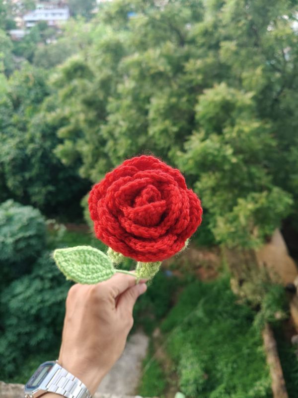 “Handmade crochet rose flower – a timeless, everlasting bloom perfect for gifts, home décor, or adding a touch of romance.” 🌹