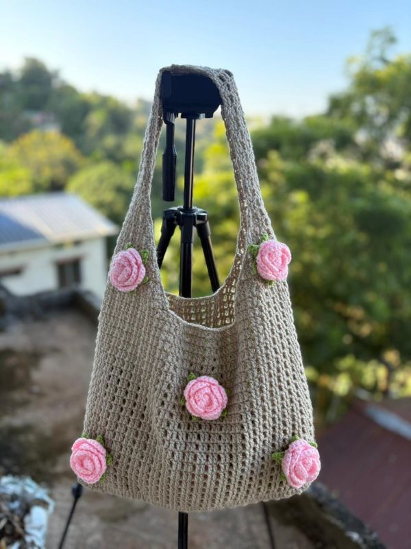 Handcrafted Crochet Rose Shoulder Bag – Cottagecore Charm